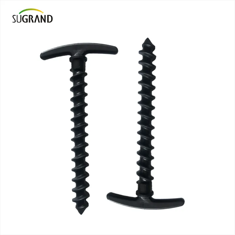 Plastic pegs have a mushroom head and a shaft with barbed sections for a secure interlock with the soil.For fixing landscape fabrics, weed mats, mulch mats to the ground.Securing weed control fabrics to the ground,fixing landscape geotextiles to the soil,Fixing the base of anti-bird netting,for securing tree mulch mats