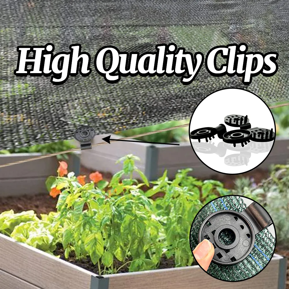 The Shade Cloth Plastic Clips are versatile and suitable for a variety of different applications. Sunshade Net Clip can be used with different kinds of mesh fabrics, sunshade nets, and heat insulation nets, including sunshade sails, bird-proof nets, garden nets, and agricultural nets.